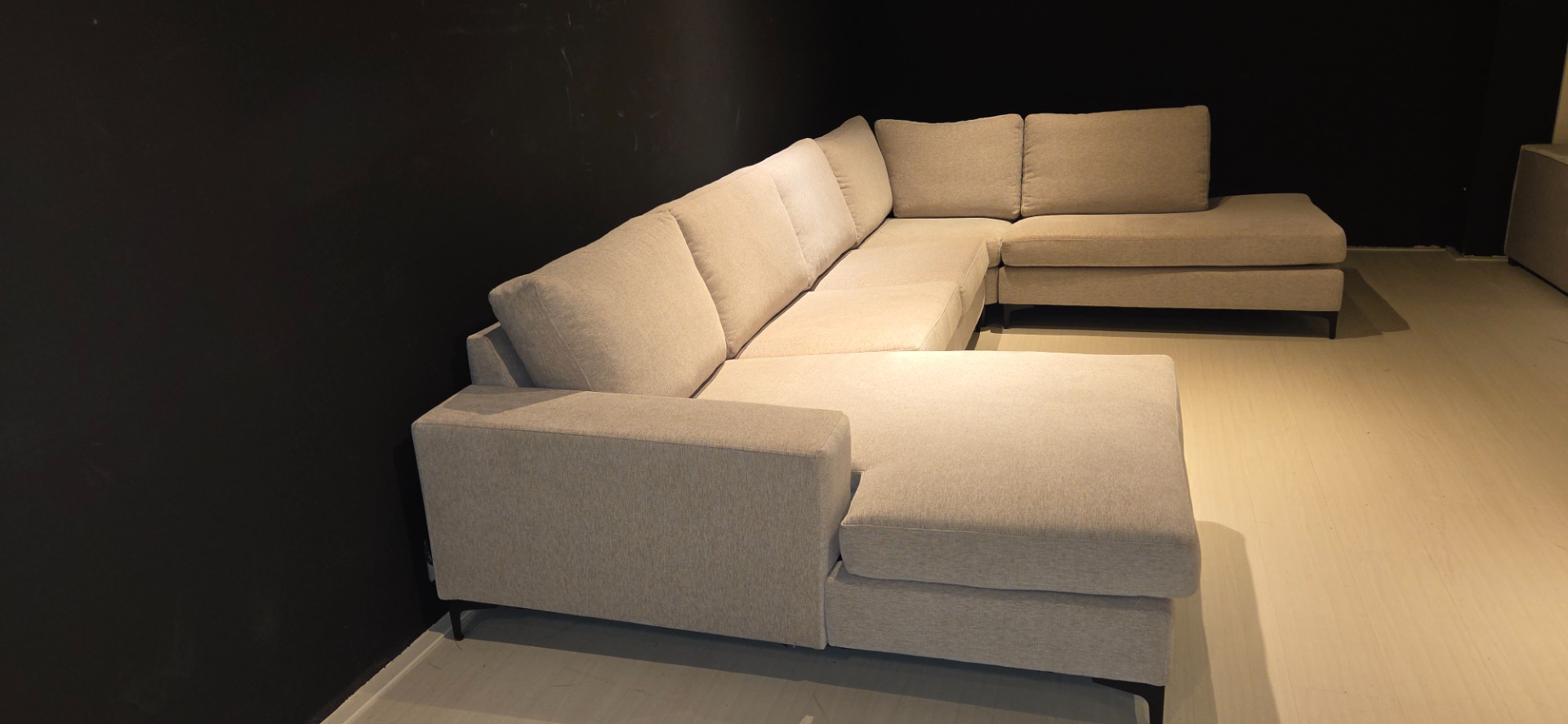 De strakke stoffering en nauwkeurige afwerking van de naden benadrukken de hoogwaardige kwaliteit van dit meubel.