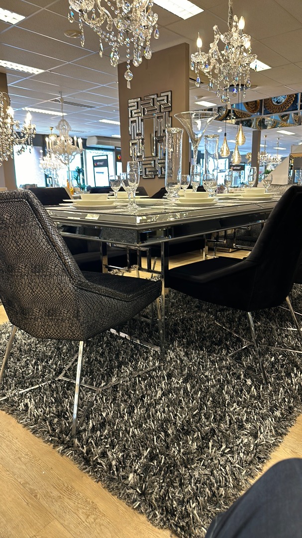 dressoir 210cm +spiegel +vitrine 2 deuren+eettafel 2metr+6x stoelen voor 5745,-
