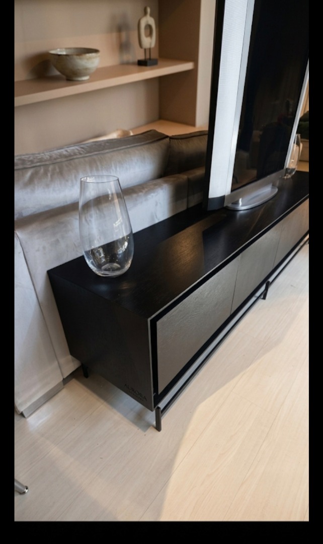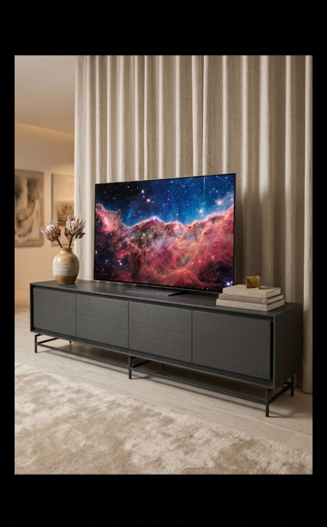 De greeploze zwarte console zorgt voor een moderne look die past in elk-end interieur.