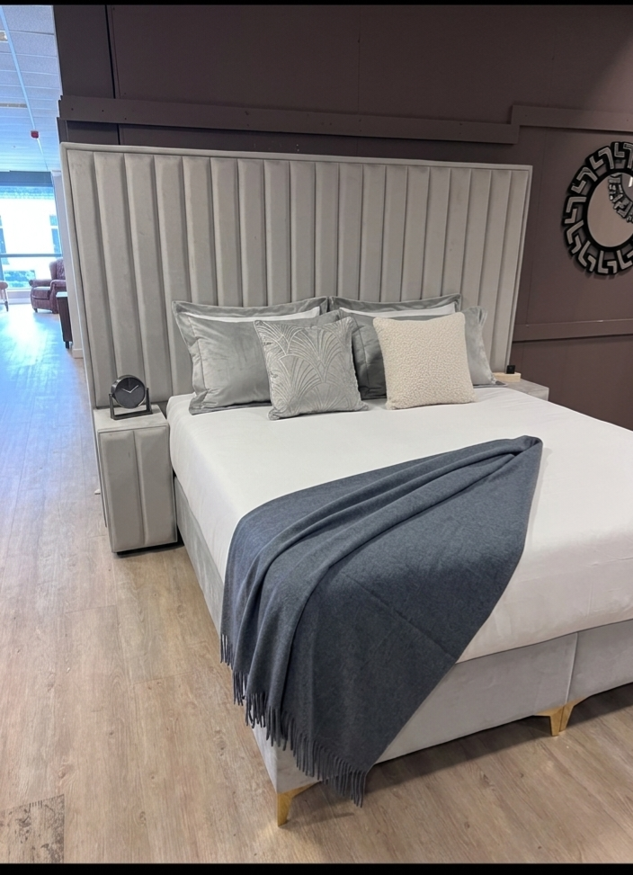 Inclusief Nactkastjes: Voor een harmonieus geheel zijn de bijpassende gestoffeerde nachtkastjes inbegrepen in het design.